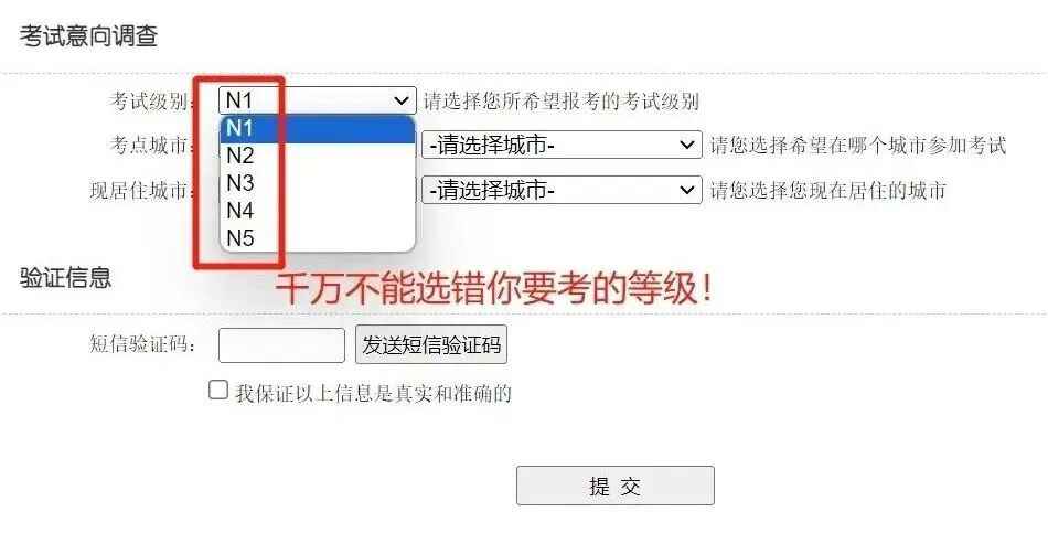 第六步:选择要报考的日语等级