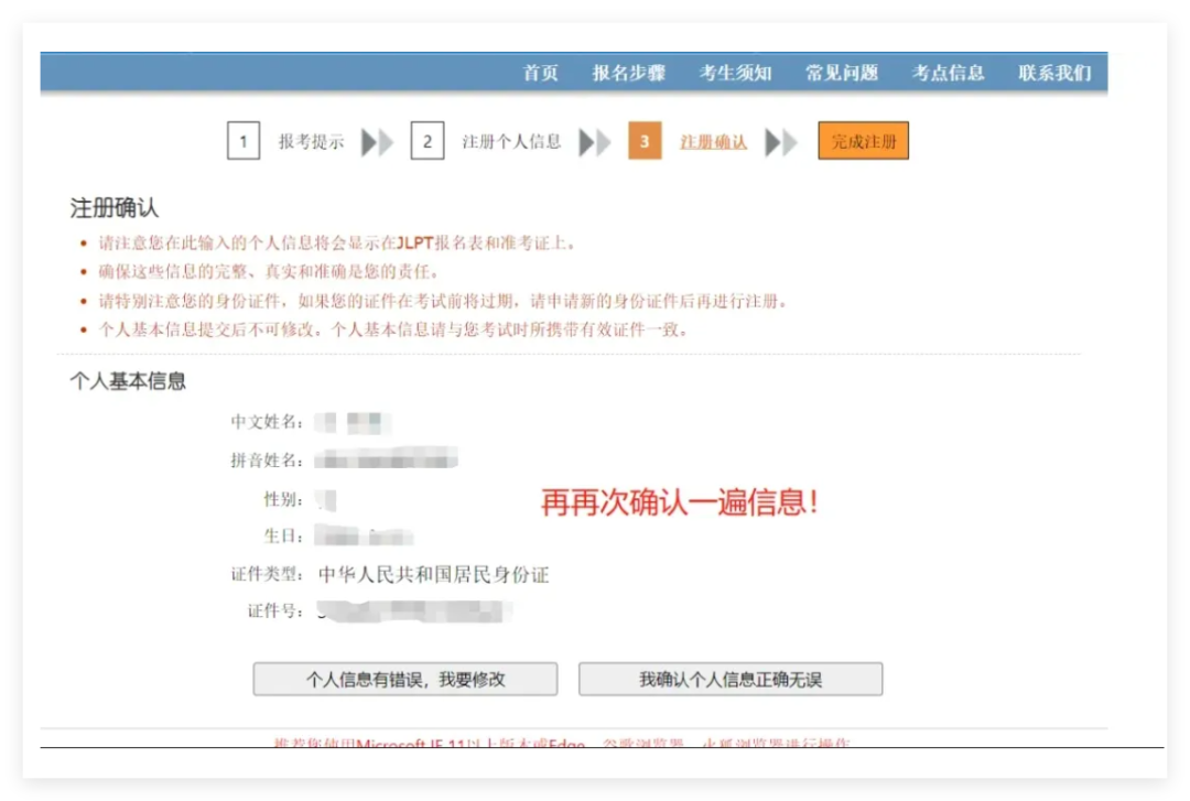 缴费前务必核对姓名拼音、证件号、考试级别,错误信息可能导致无法参加考试或成绩无效!