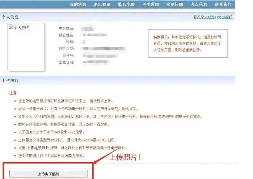 第十二步:按要求上传电子照片