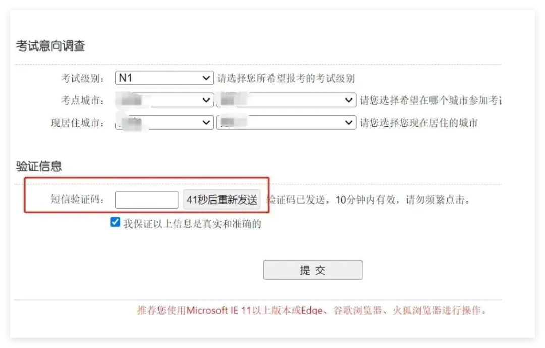 第八步:输入手机验证码,正确后点击提交